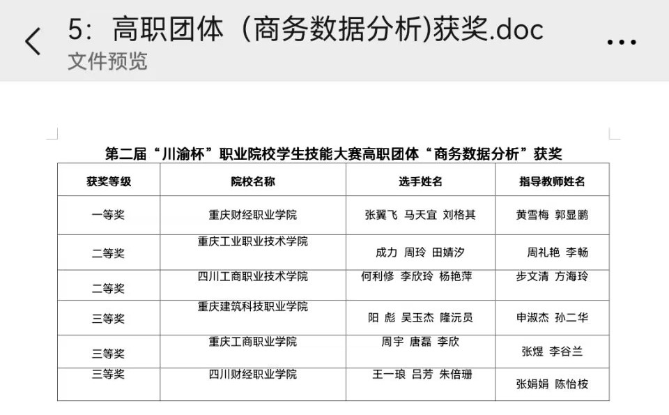 【喜报】我院学子在第二届“川渝杯”职业院校学生技能大赛高职组商务数据分析赛项中荣获团体三等奖