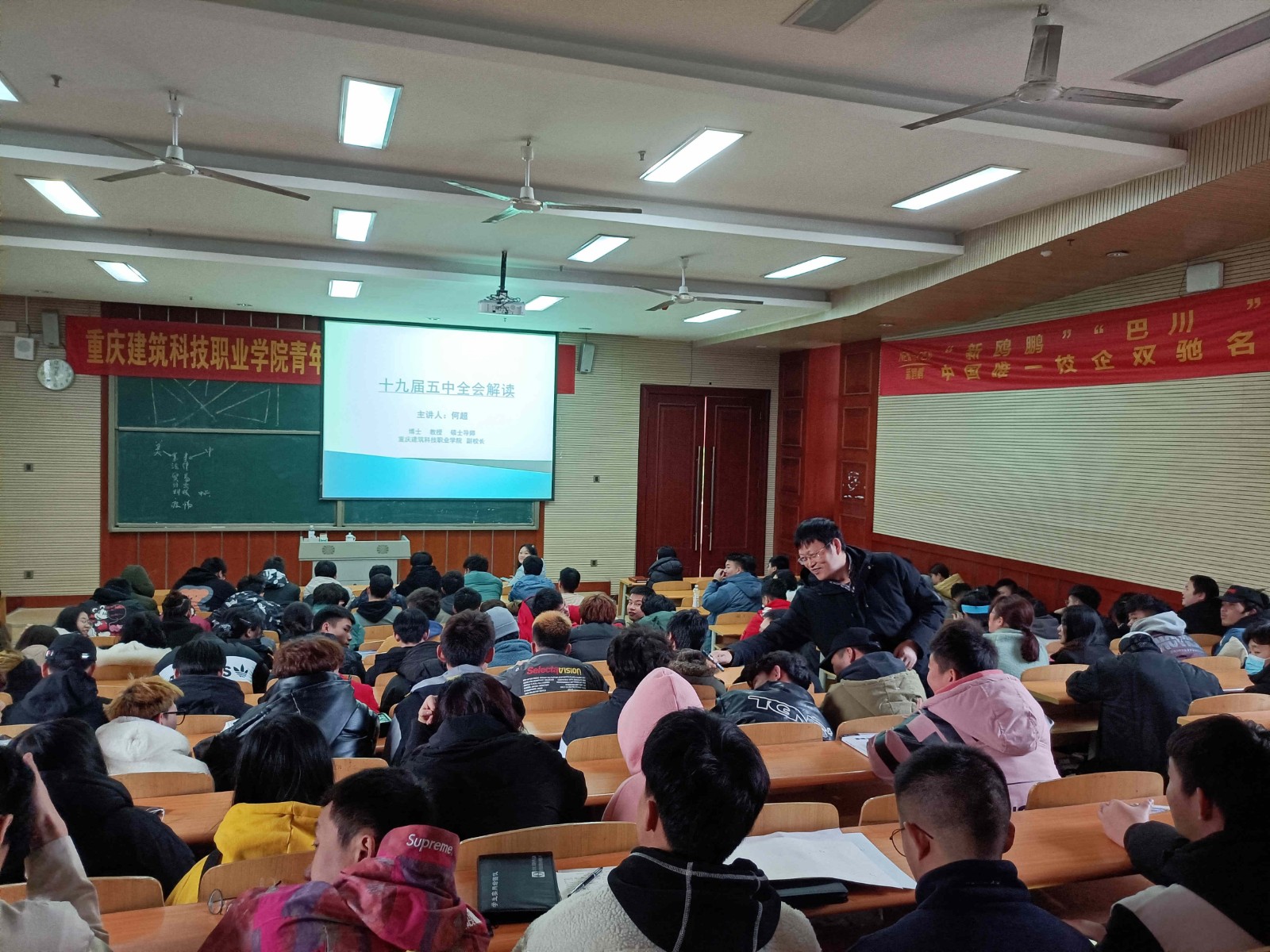 2020年是不平凡的一年,在全世界共同抗“疫”的大背景下,我们国家的经济正在复苏、人民生活正处于常态化,喜事、大事一件接着一件,党的十九届五中全会胜利召开更是举国欢庆。为了同学们更深入的学习领会党的十九届五中全会精神,Kaiyun官方网站登录入口何超副校长于2020年12月23日在笃学楼1205教室为我院学子开展以“十九届五中全会解读”为主题的讲座。参加本次讲座的有建筑城规学院彭院长、办公室主任郭静秋老师以及建筑城规学院2020级学生。