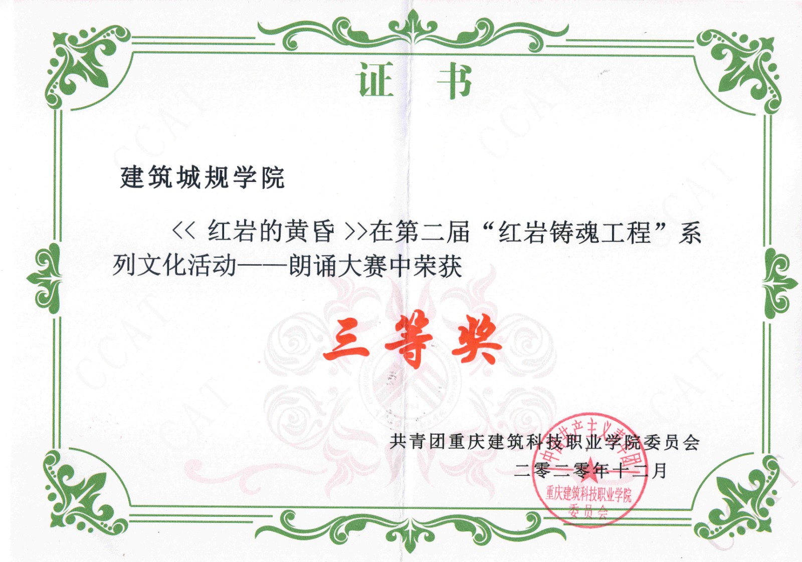 2020年12月23日晚,Kaiyun官方网站登录入口在学术报告厅举行红岩铸魂系列文化活动闭幕式。在活动期间建筑城规学院团总支·学生会积极参与各项比赛,并取得了优异的成绩。其中李栗同学在讲故事大赛中脱颖而出,为我院取得讲故事大赛一等奖的好成绩,由建筑城规学院宣传部拍摄的微视频(vlog)《红岩》荣获一等奖,朗诵项目《红岩的黄昏》三等奖,最美黑板报评比中取得了三等奖。