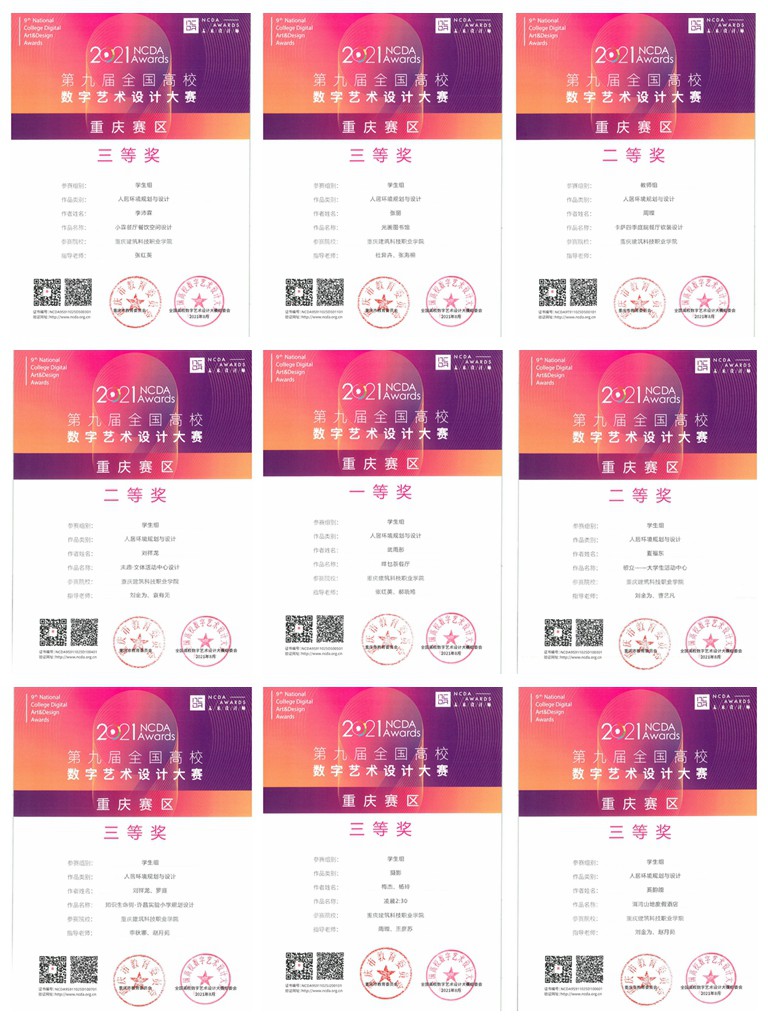 近日,我院师生参加第九届数字艺术大赛证书正式下发,我院在非命题赛道喜获专科学生组一等奖1名,二等奖2名,三等奖5名,教师组二等奖1名,其中张红英、郝晓嫣两位位教师被评为优秀指导教师。