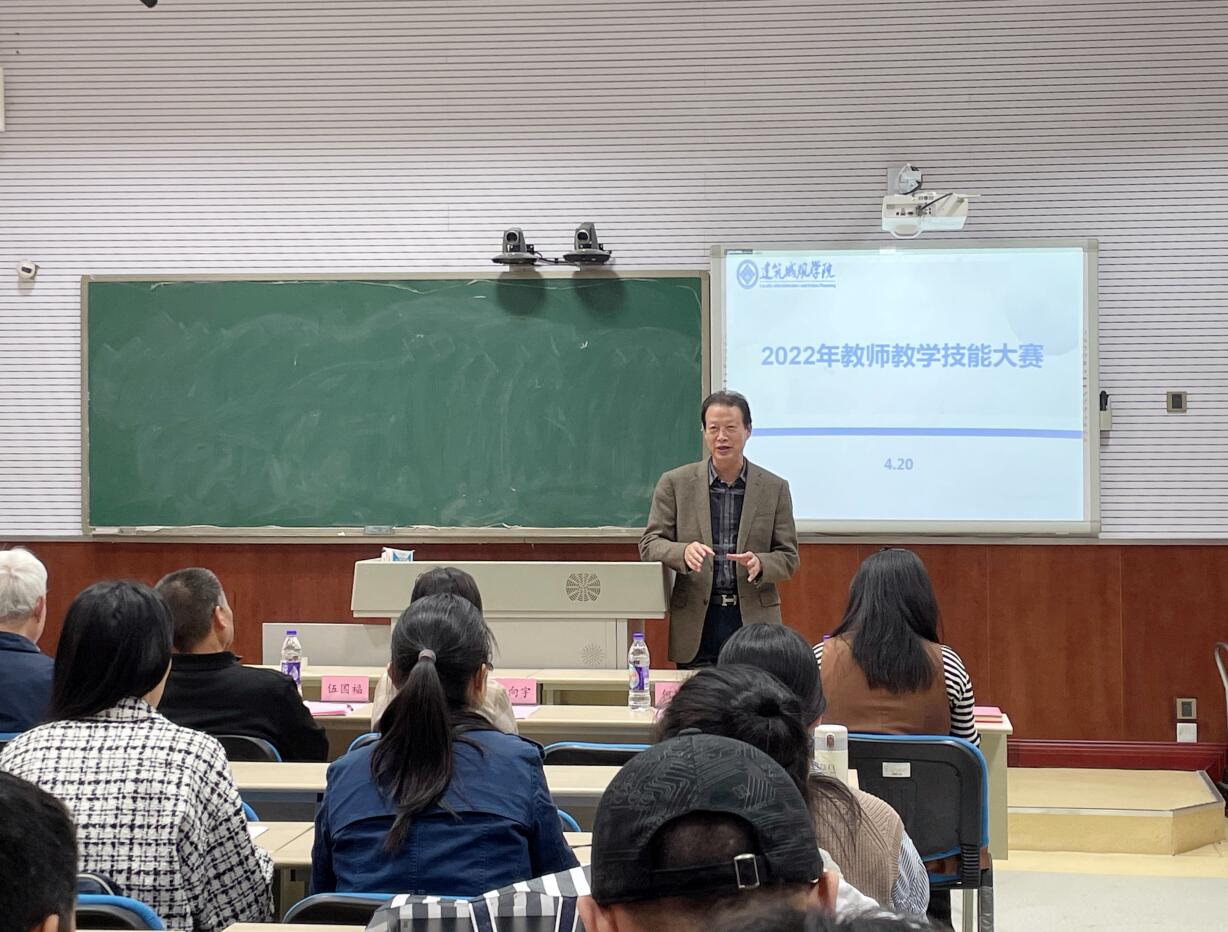 在比赛现场,何培斌副校长强调教学工作是一个教师的本质工作,教书育人,首先要有过硬的教学技能,同时还要不断学习,提升教学水平,加强教师的自信、自尊和自豪感,并预祝各参赛队伍取得好成绩,本次大赛取得圆满成功。