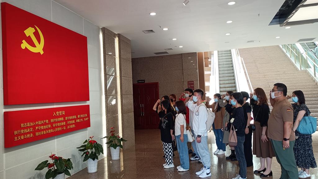 活动最后,在党旗和入党誓词下,全体党员重温入党誓词。相信这次活动能让大家深深地感受到和平时期的幸福生活来之不易,也能够更加坚定理想信念,在自己的岗位上为人民服务。