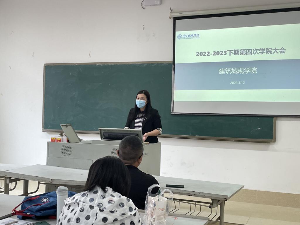 4月13日,建筑城规学院在1508召开全院教师大会,学院全体教职工参加此次会议。本次会议总结了上半学期工作的内容,然后明确接下来的工作要点,细化工作要求。