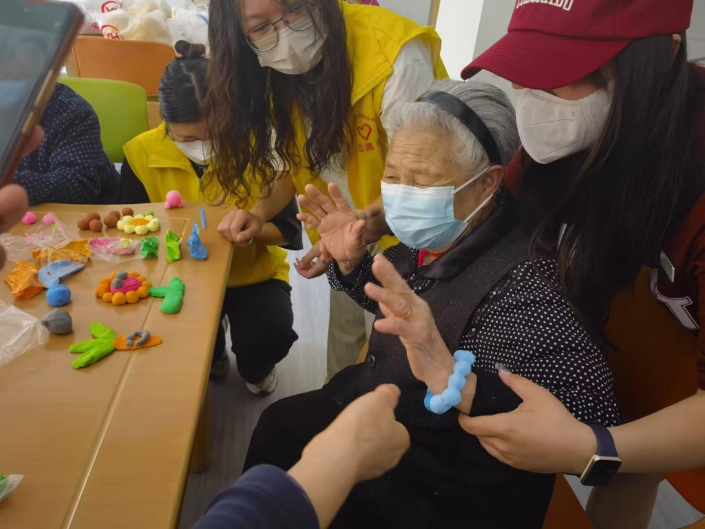 本次活动志愿者们有序分组,一方面陪伴老人一起进行黏土手工艺品的制作在制作过程中拉进与老人们的距离;伴随着服务中心播放的轻快音乐,志愿者们与老人们交心谈论,共度美好的下午时光;整个活动过程中,老人们脸上始终洋溢着幸福的笑容,这既是老人们最真实的内心写照,也是对志愿者们最甜蜜的褒奖