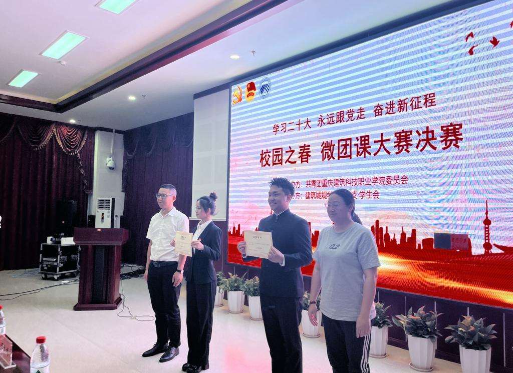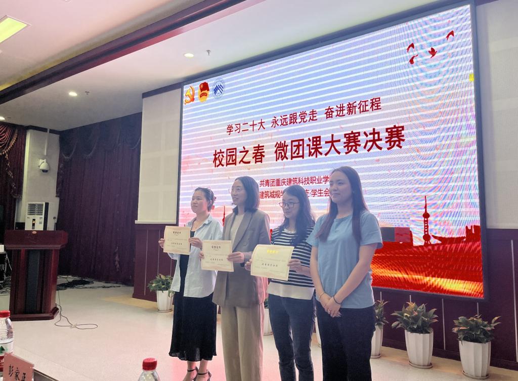 经过激烈的角逐,现场评委公平公正的进行评分最终评选出一等奖一名,二等奖两名,三等奖四名。建筑工程学院《热血青春  让青春为祖国绽放》微团课斩获一等奖;建筑城规学院《以青春之声 展青年担当》微团课和智能制造工程学院《踔厉奋达跟党走 勇毅前行向未来》微团课荣获二等奖;房地产营销学院《多难兴邦精诚志 同心同德显担当》微团课、数字工程学院《学习二十大精神 品味英楷故事情》微团课、建筑管理学院《以青春之我 筑青春之国》微团课、环境艺术学院《永不凋零的巾帼玫瑰》微团课获得三等奖。