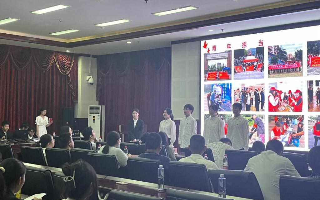 初心点亮新时代,青春献礼新征程,青年向党建新功。5月25日18:00,由校团委主办,建筑城规学院承办的校园之春微团课大赛决赛在笃学楼4305会议室举行。本次微团课以“学习二十大 永远跟党走 奋进新征程”为主题,经过各学院初赛,最终7支队伍挺进本次决赛。本次决赛评委由校团委副书记刘诗雨和各学院学工办主任李清玲、彭家正、黄川、罗秋芳、邹代旖、陈清清担任;各二级学院书记和部分同学作为嘉宾莅临现场观赛。