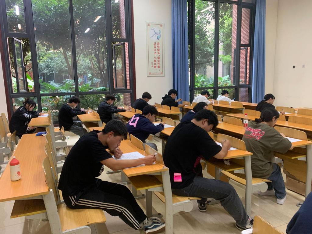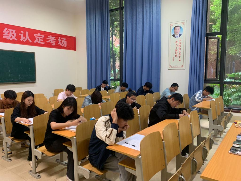 考试开始前,监考人员宣读考试纪律、考试注意事项以及逐一核对各位考生的信息。考试过程中,同学严守考试纪律,认真思考作答。本次结业考试采取闭卷形式,分别由选择题、填空题、简答题、问答题四个题型组成,考试内容以党的知识和实时政治相结合,进一步强化对党的知识的理解和领悟。