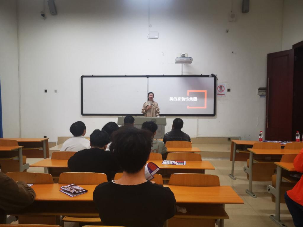 重庆美的家装饰工程集团有限公司做为一个深耕家装行业22载的重庆本土品牌,是一家专业致力品质家居装饰工程的集团化企业。宣讲会上,首先,美的家装饰公司的相关负责人,从企业的定位、发展历程、企业的荣誉、企业的设计范围、以及公司福利、招聘岗位、员工培训进行了简单的介绍,让同学们对企业有了一定的了解与认识。其次,在现场,美的家装饰公司的相关负责人和同学们在互动环节进行了深入的交流,并对同学们提出的问题一一讲解,同时结合自身经历跟学生们分享了成功的经验和心得,促进与同学们心灵的沟通与交流,并激励大家,要有挑战自己的信心和勇气,积极择业,努力就业。