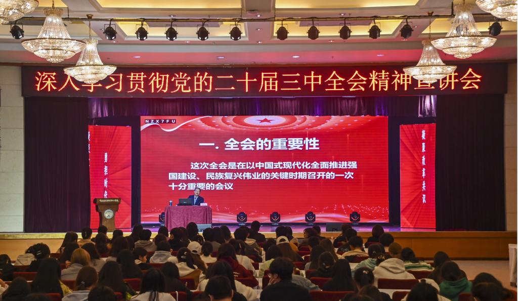 何培斌副校长以生动的语言、丰富的案例,深入浅出地讲解了党的二十届三中全会对国家发展、民族复兴的重大战略意义。讲座上,何培斌副校长强调,要将学习贯彻党的二十届三中全会精神转化为推动工作的强大力量,从学校、干部、教师、辅导员及学生层面,引导全院师生,以学促行,以学促干,以高度的责任感和使命感奋发进取,为全面建成社会主义现代化强国、实现第二个百年奋斗目标,以中国式现代化全面推进中华民族伟大复兴而努力奋斗。