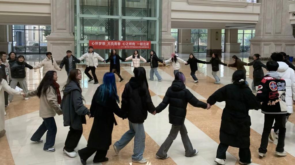 而后的“数字抱团”游戏紧张又刺激。主持人报出数字后,众人赶忙匆忙抱团,落单的同学们要么遗憾淘汰,要么即兴表演节目,意外状况与欢乐氛围相互交织,极大地提升了大家的反应速度以及协作意识。