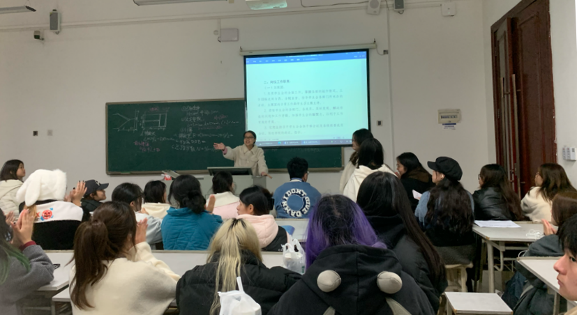 紧接着,学工办主任、团总支书记陈清清详细介绍了团总支·学生会各个部门的岗位工作职责,台下的干事们,眼中闪烁着如星辰般璀璨的期待与热情,那是对未来工作的渴望,是为学院奉献的决心。随后并依次介绍了每个部门的部长,让大家互相认识了解。陈老师对大家寄予厚望,希望各部长干事们在参加各类社会实践之余,能够平衡好自身的学习,也希望大家通过一次次的社会实践活动,多维度的提升自己。